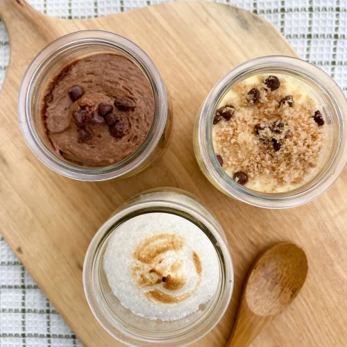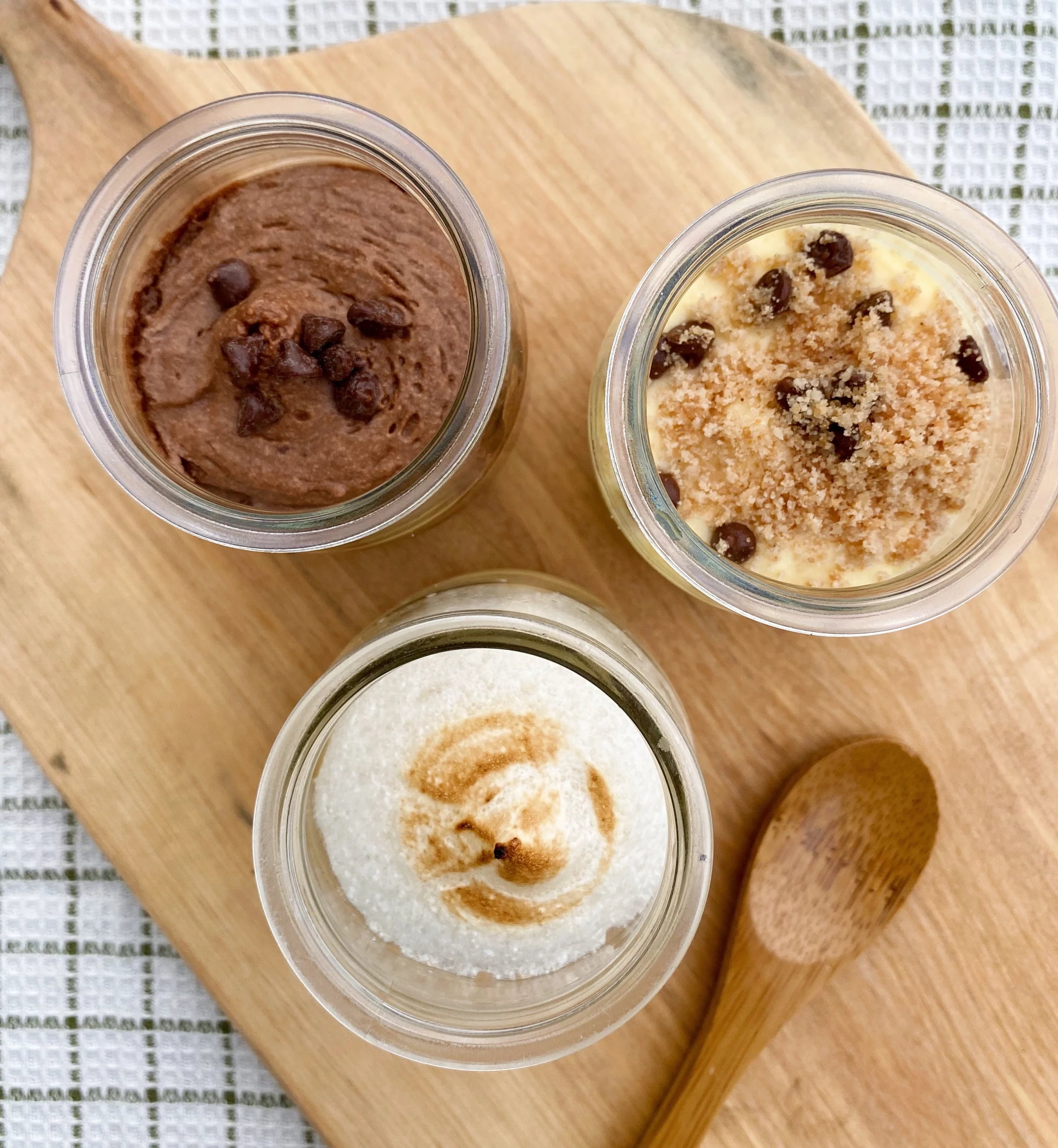 Au choix : Mousse au chocolat, mousse au chocolat vegan, tiramisu speculoos, apple crumble, snickers, berry cheesecake