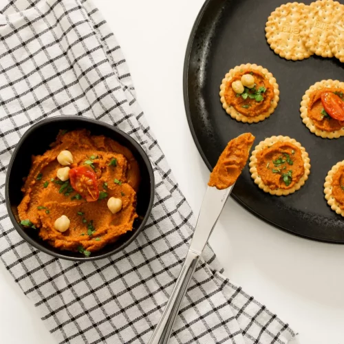 Houmous de lentilles corail, carottes et tomates séchées