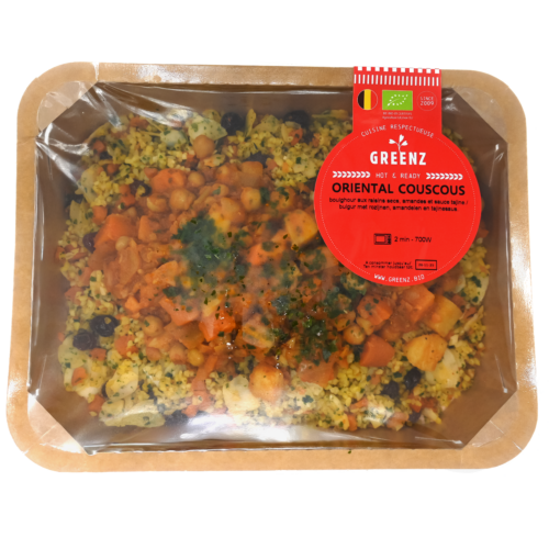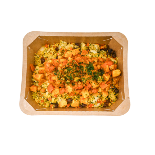 Boulghour aux raisins secs, amandes et sauce tajine./ bulgur met rozijnen, amandelen en tajinesaus.
