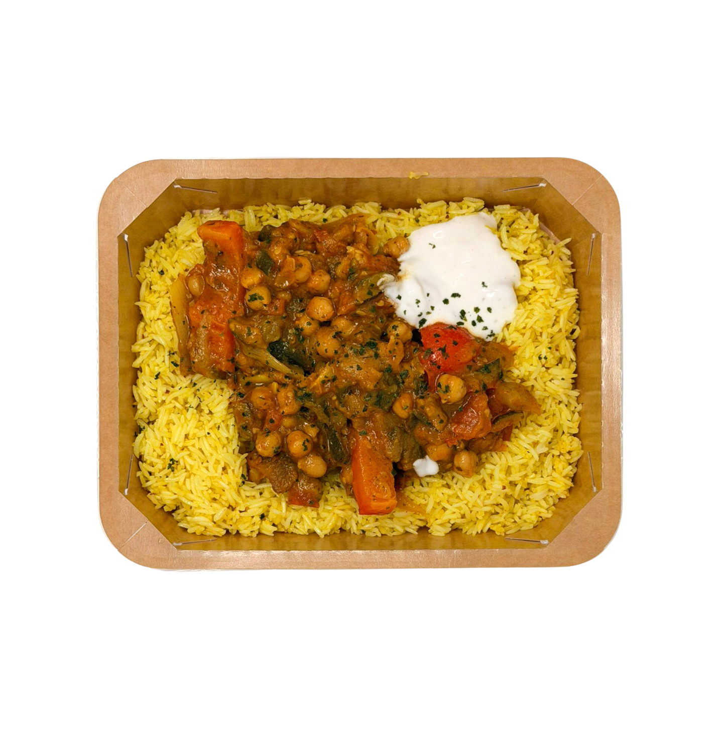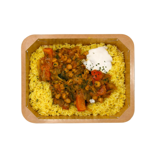 Riz au curcuma, sauce ratatouille a l’oriental avec une touche d’harissa / Rijst met kurkuma, oosterse ratatouillesaus met een vleugje harissa